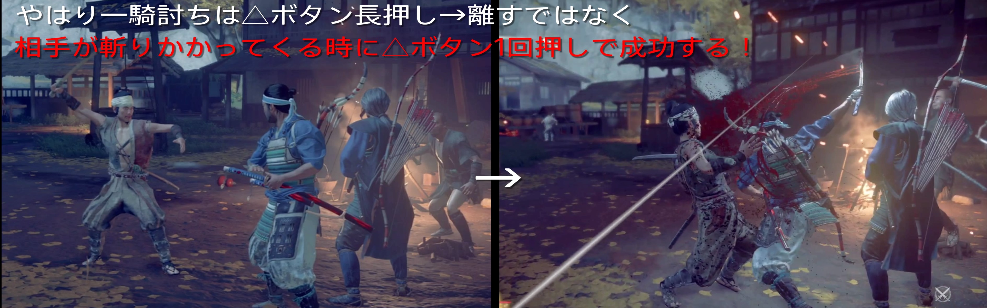 I already got the hang of it. Press and hold the △ button → Press and hold the △ button once for the enemy who is trying to slash instead of releasing it. 👍