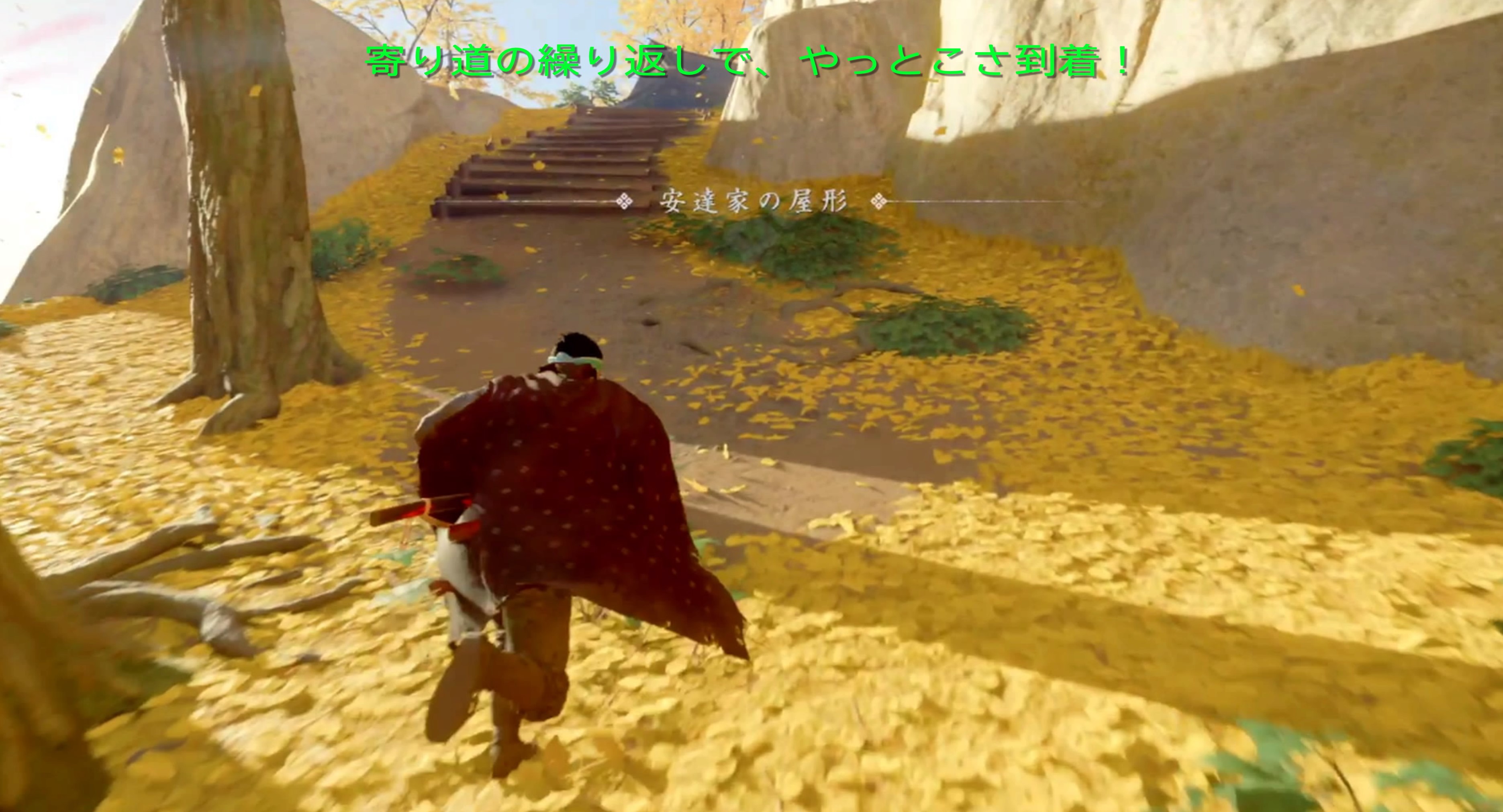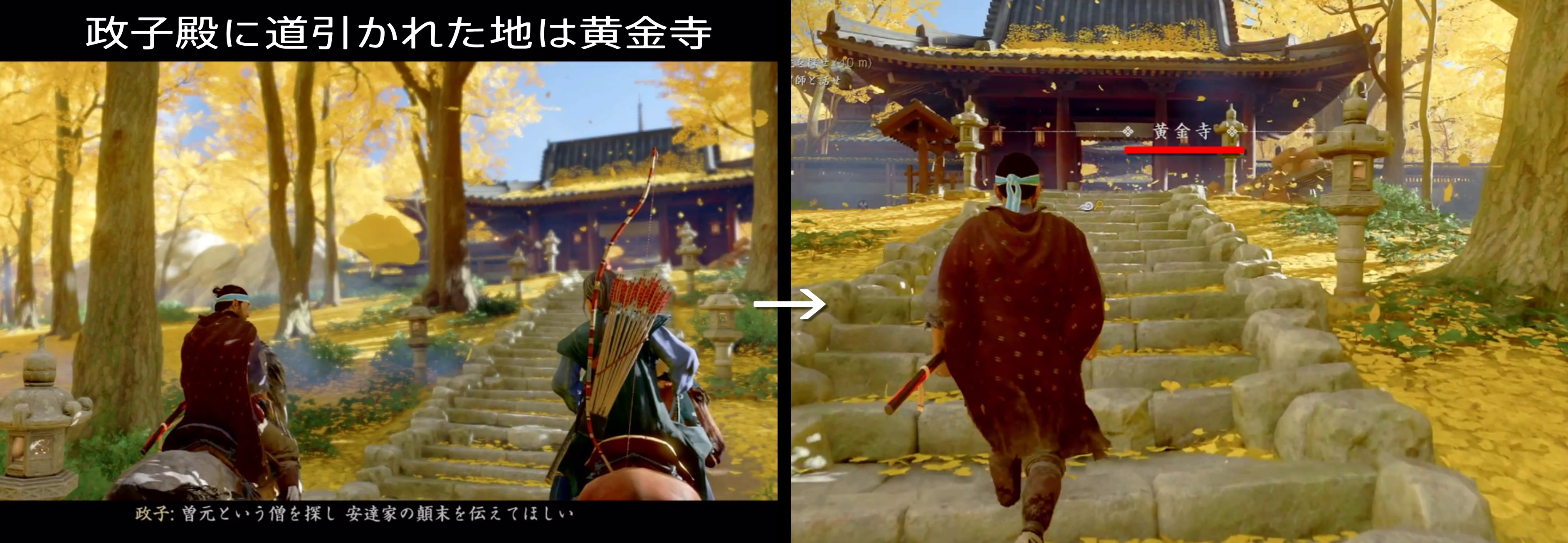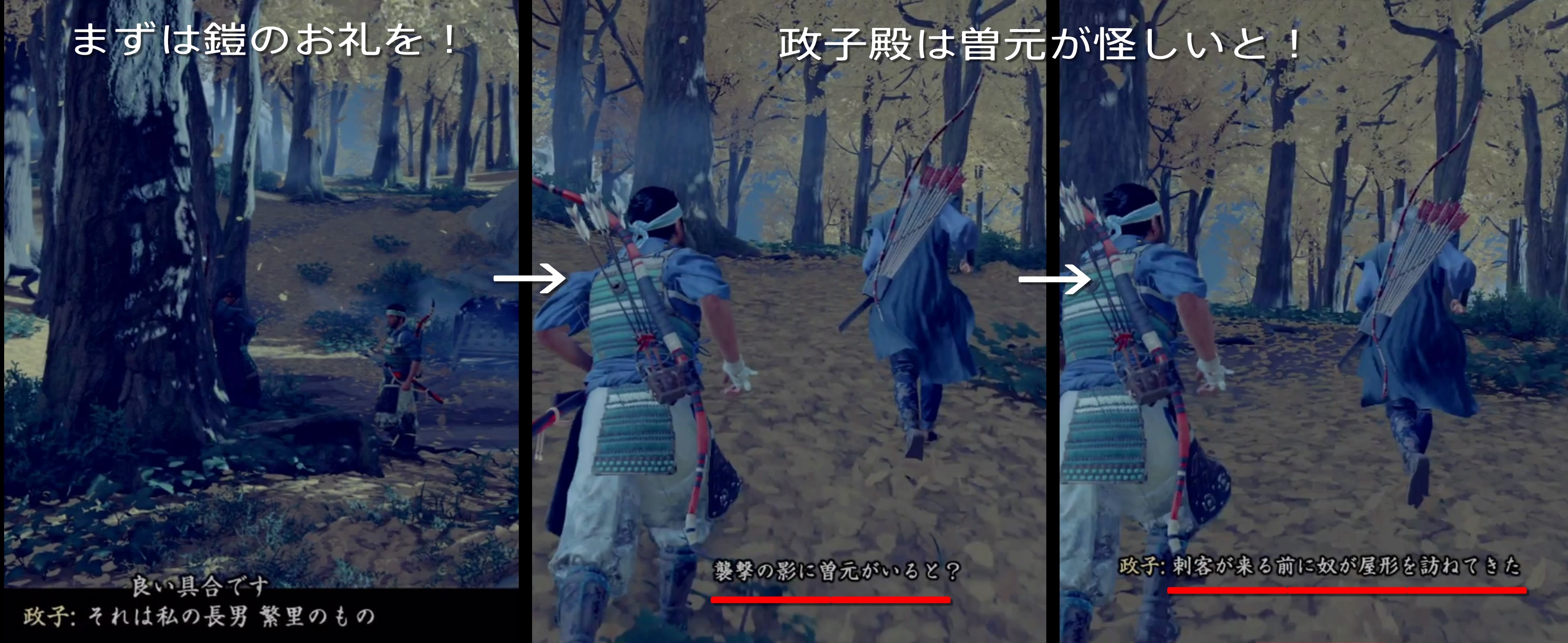 After overcoming the attack at Adachi’s house and investigating the surrounding area, there are footprints. If you follow the footsteps and walk outside the site, you will find a dead horse, and if you investigate, a single arrow will fly.