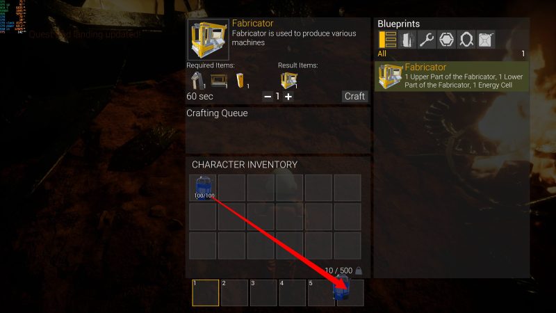 Looking at the image below, you need 20 iron minerals and a fully charged battery. Even if you put only this material in the inventory of the device and start crafting, the countdown to completion will stop and it will not proceed.