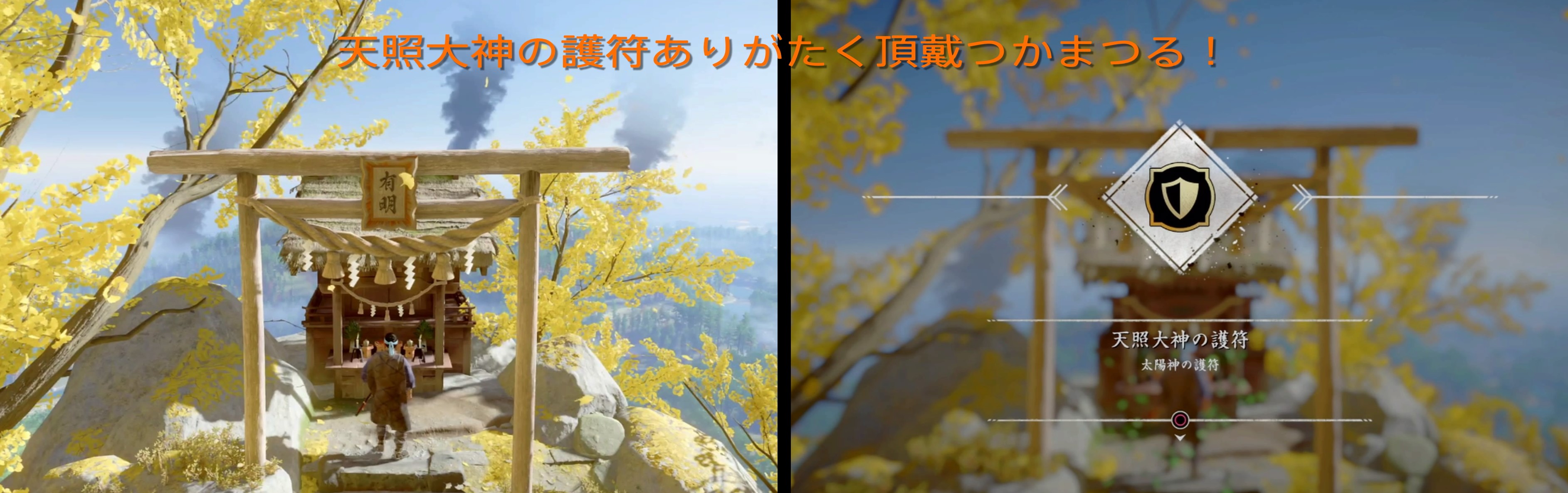 ゴーストオブツシマ 皆さんゴースト・オブ・ツシマ楽しんでますか?今回の護符は比較的見つけやすい場所にあるので、ご存知の方も多いかもしれませんが、紹介したいので記載します😊