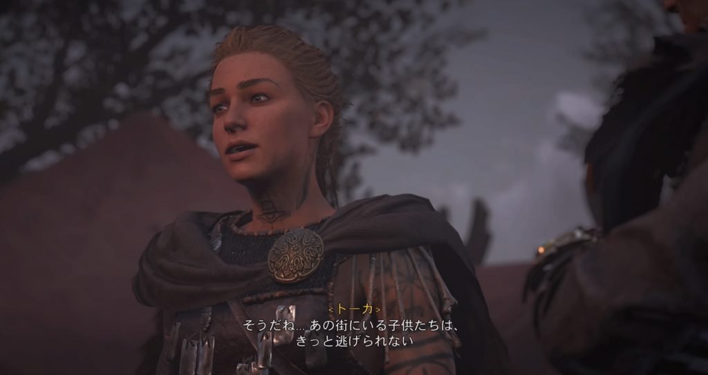 パリ包囲戦は、西フランクにおけるヴァイキングの絶頂期を象徴する事件で、パリを攻略し略奪した戦いです。 ここではトーカの女性らしい感情表現で、戦火の惨さをプレイヤーに示してきます。