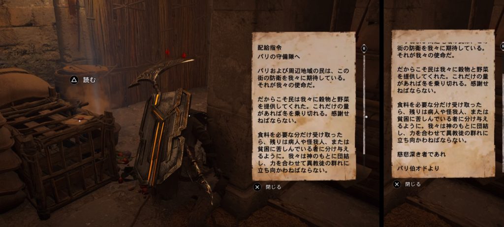 鍵を使い扉の中へと入ると、包囲戦に対するオド伯の心の葛藤がつづられた手紙があります。 醜い争いのない世なら、オド伯は良き指導者または良き統治者になりそうな男です。