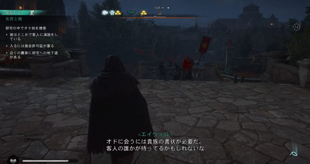 パリでは守護兵が至る所にいますので、用心深く移動する必要があります。 もちろん見つかったからと言って、クエスト失敗になる訳ではありませんが、戦闘となること必至です。