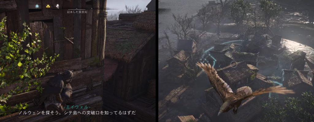 ノルウェンに辿り着くために、冠水した貧民街を捜索です。 まずは密売人の倉庫を特定しなければなりません。