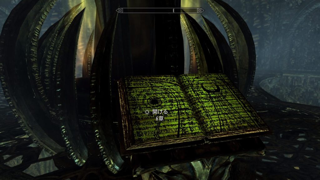 ミラークが白骨化すると同時に、エリア中央に巨大な書物が現れます。