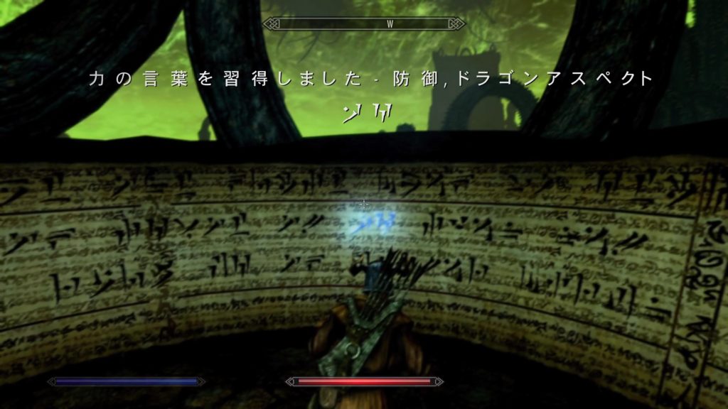 敵を一掃したら、奥にあるシャウトの壁画で言葉を修得します。