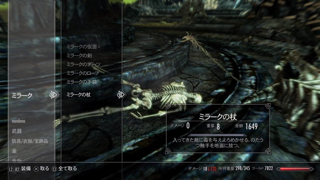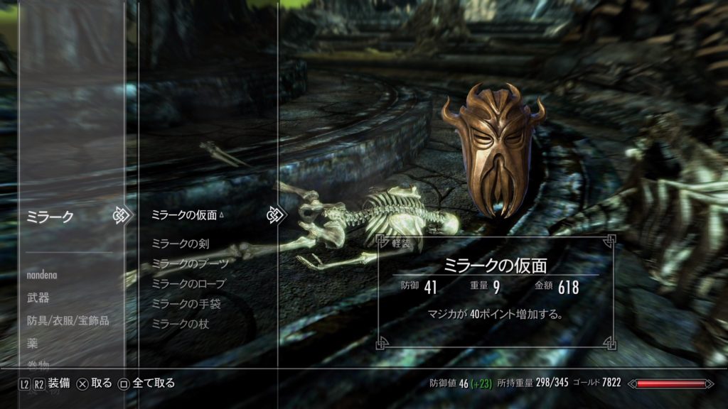 まずは、ミラーク装備を回収しましょう。 どれも使いどころが限定されそうな武具ですが、せっかくなので記念に取っておきます。