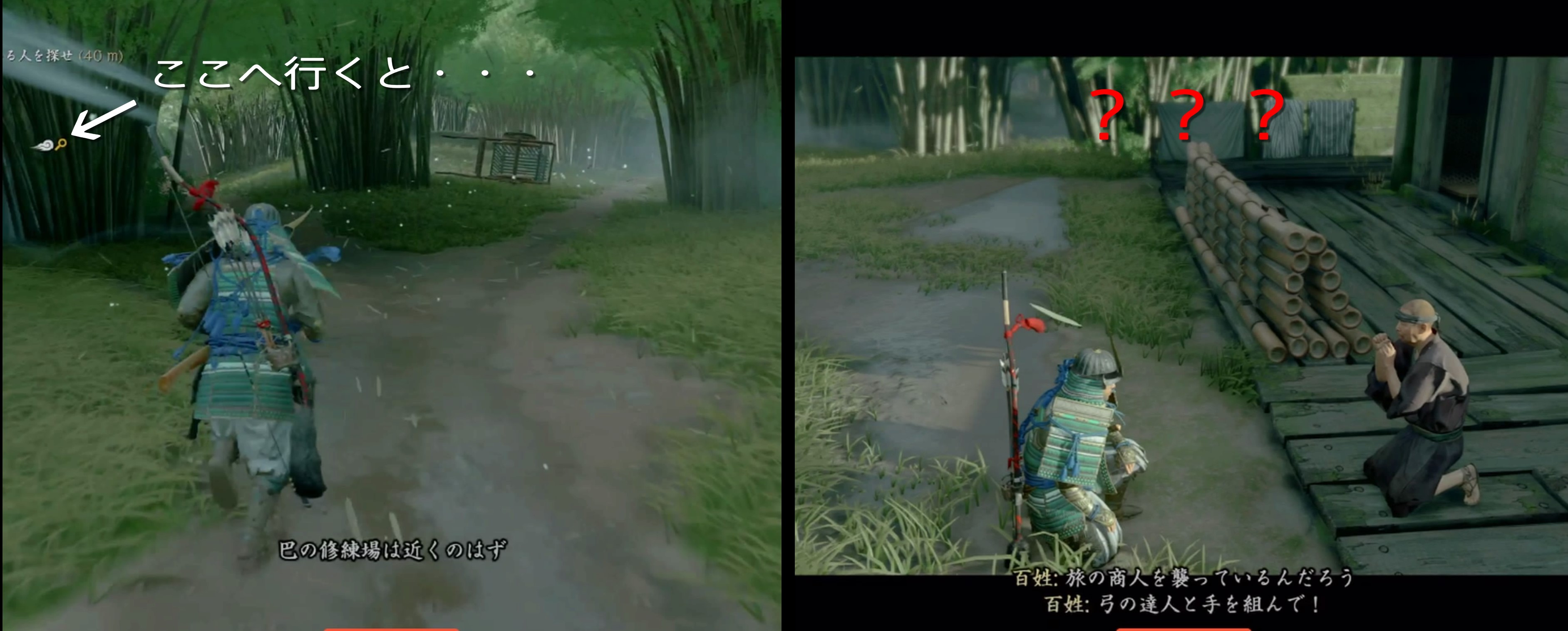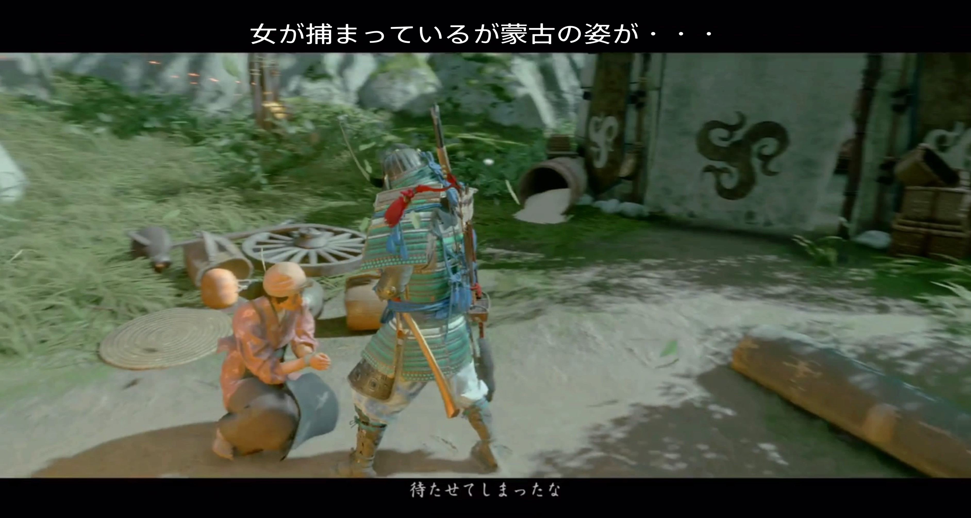修練場に着くと、一人の女が捕らわれています。 蒙古兵の姿は見えず、女に話しかけるムービーが始まります。