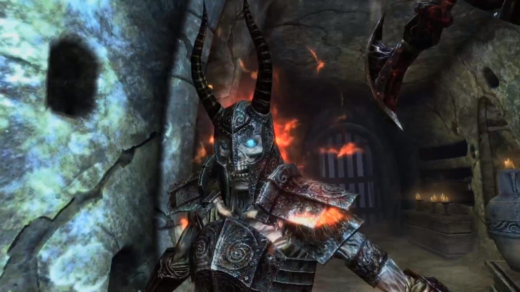 ヴァルダーの指示に従い、壁掛け用燭台にボトルの血を注ぎ、玉座に座れば儀式は終了します。 少し離れた位置にある柩から、本クエストのラスボス「ヘブノラーク」が復活する様を見学します。