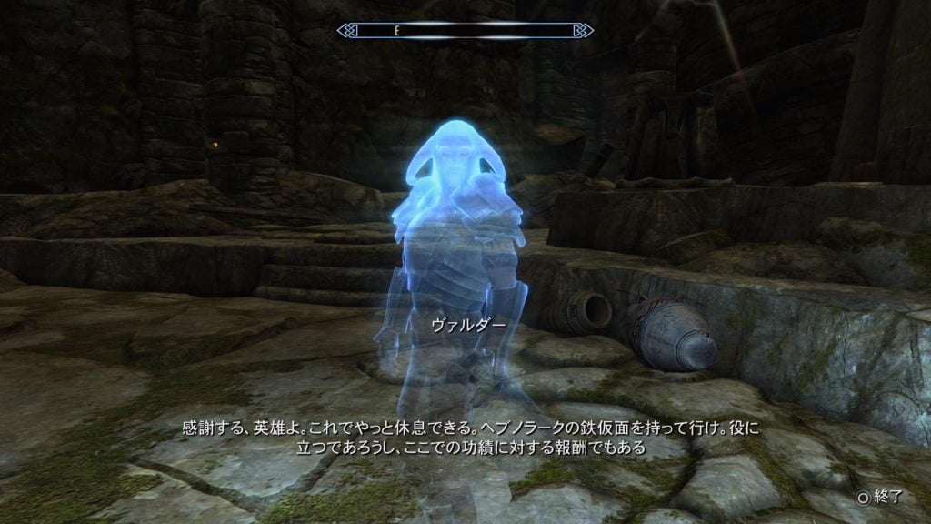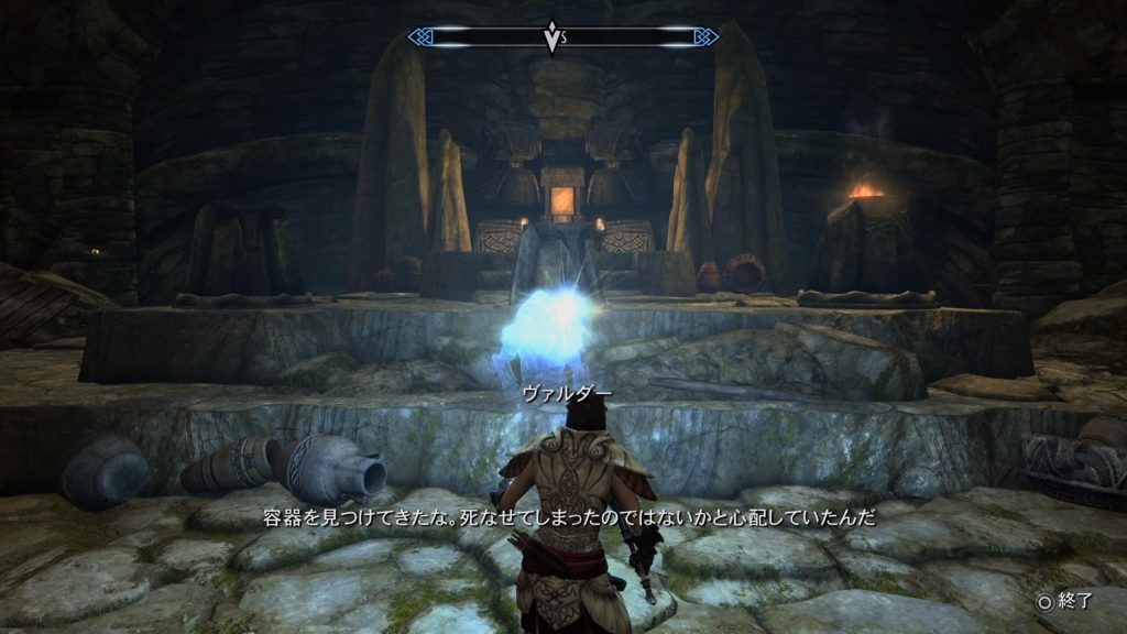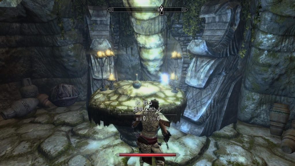 シャウト文字のある部屋は、クエスト「待機する悪漢」をクリアすると再び入室不可になっています。 必ず習得してから、右側にある通路より「透明なボトル」3つをヴァルダーの元へ持ち帰りましょう。