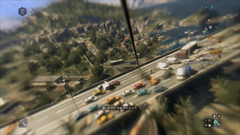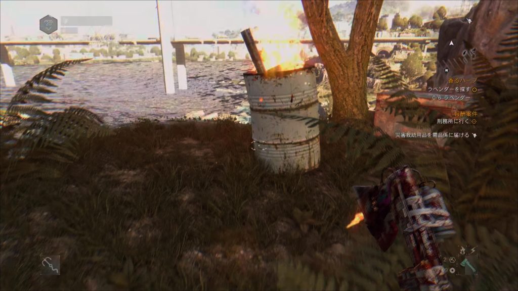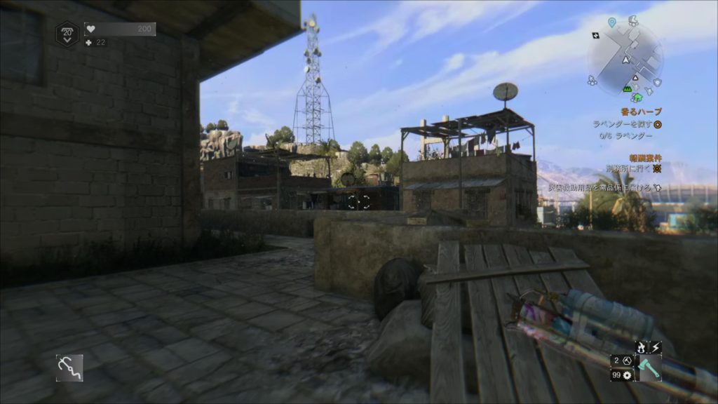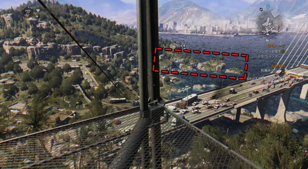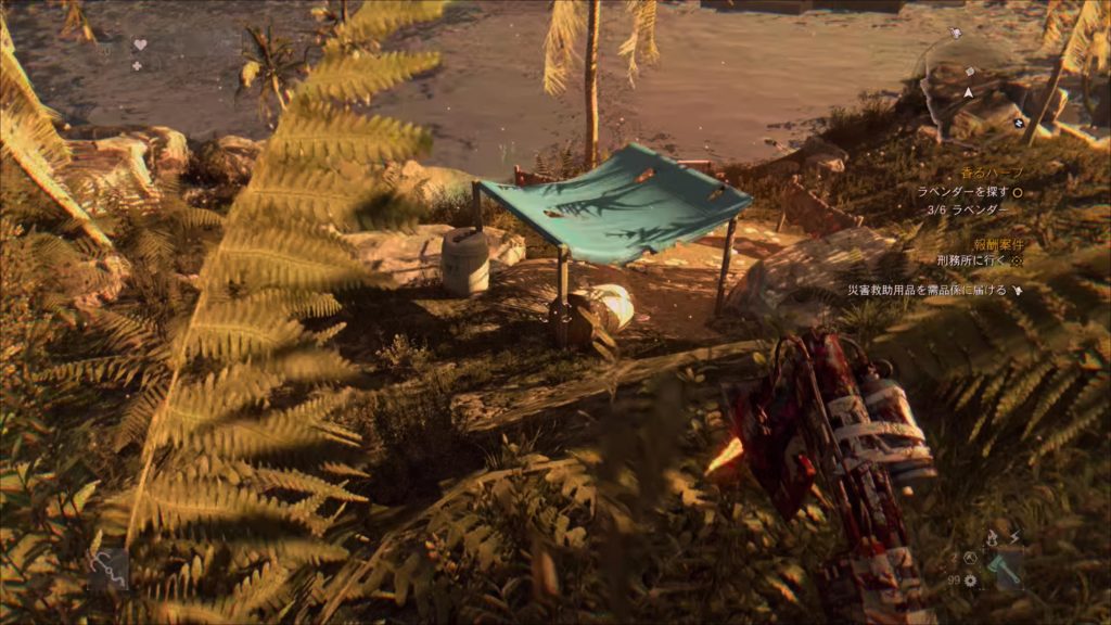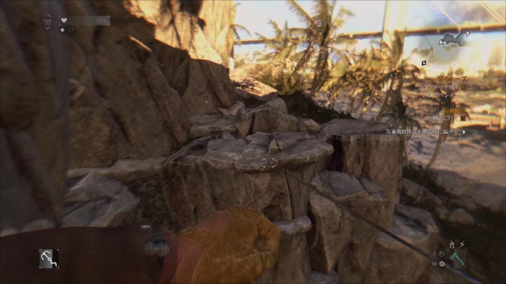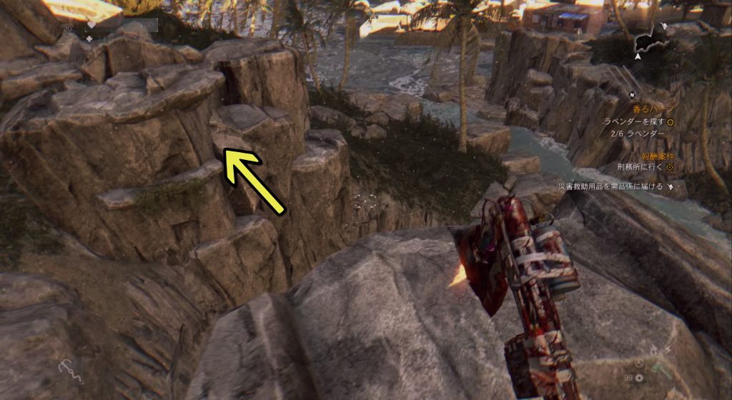 移動には「フック」があると便利です。 意外と発見しづらいラベンダーを6本採取するには、生息場所の両端を探すのが良いでしょう。