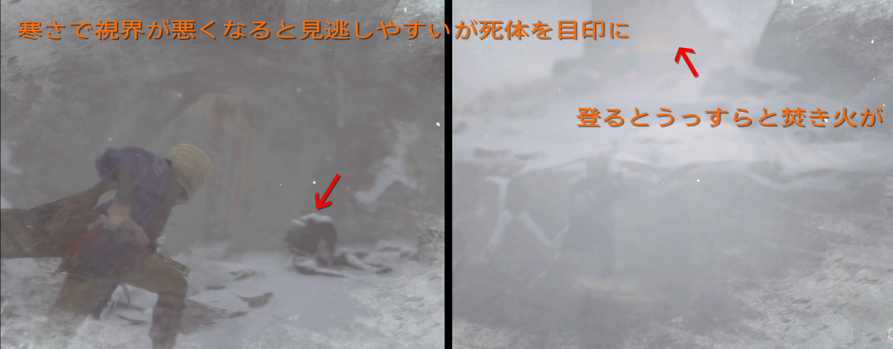 この時、余計な探索はせず目的地に向かって突き進みます。 何故なら、凍死してしまうからです。