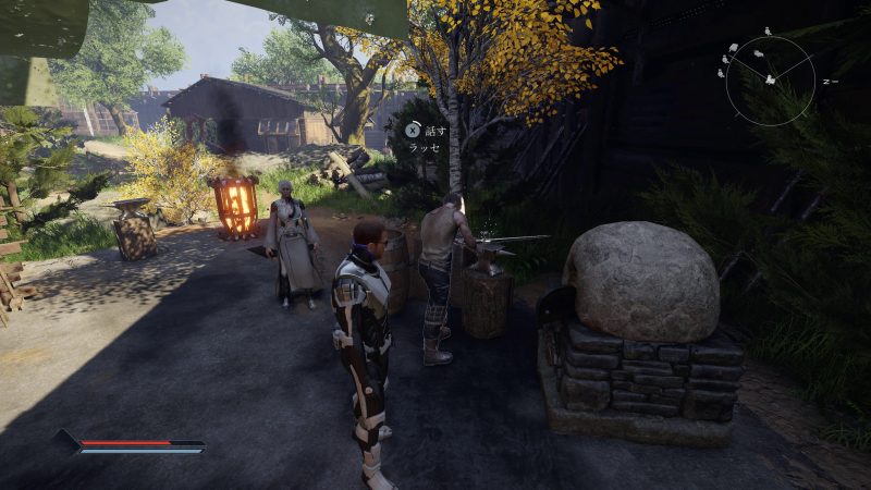 今回の依頼主である鍛冶屋のラッセは、下の画像で推測できるように、入口から道沿いに左方向へ進んだ場所に居ます。