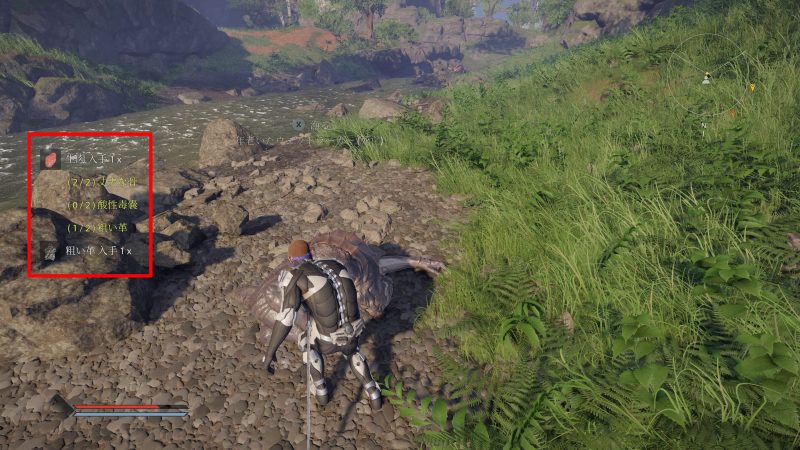 こちらは比較的容易です。 川から出てくるのを待ち、足場のよい場所での戦闘で倒します。