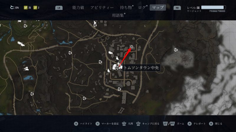 トムソンタウン北から道なりに北西へと進むと、左手に廃墟がポツンと現れます。 この中に地図の断片はありますが、訪問時間によっては視界が悪いので注意深く壁際にある机を探しましょう。