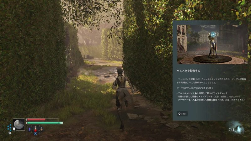 エルデンリングでは祝福、ダークソウルではかがり火、仁王では社などと同様に、スチールライジングはウェスタというアイギスの休憩所のような装置があります。 ウェスタではアップグレードやショッピングが可能で、ウェスタの解放には無条件のものもあれば、ボスを倒さないと解放できないものもあります。