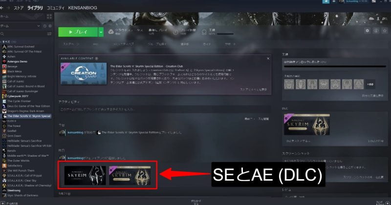 スカイリムAEは、Steamでは2021年11月11日にリリースされたスカイリムSEの有料DLCで、Steamでは以下のように説明されています。