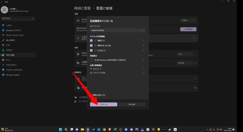 - 英語以外の環境で操作しているPCでは、Windowsに英語の言語を追加する。