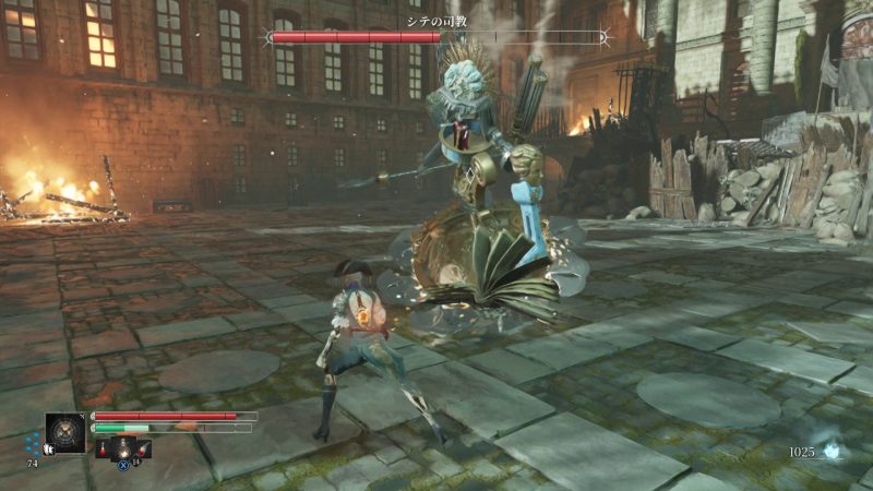 武器で戦うなら、杖攻撃2~3連の後ダウン状態になったところを攻撃していきます。 これだけで倒しきるには非常に時間を要しますし、シテの司教得意技である球体の刃物を回転させた追いかけ攻撃にハメられることも少なくないでしょう。