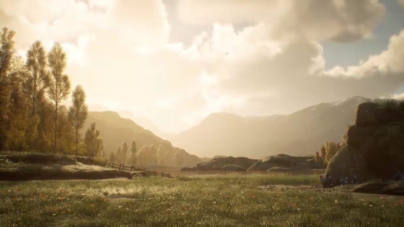 必要の部屋に戻ると、ディークとの会話が始まり新たな部屋が出現します。 下の画像のような扉が出現すると、その向こう側には美しい自然の空間が形成されています。 ここが魔法動物の新たな家、動物園的な空間をプレイヤーが作り上げることができます。