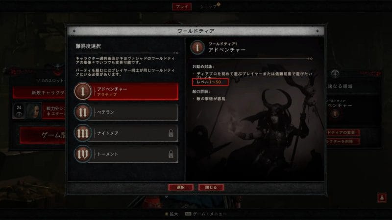 ディアブロシリーズにはワールドティアと言われるものがあり、ゲーム開始時に選択することを余儀なくされます。