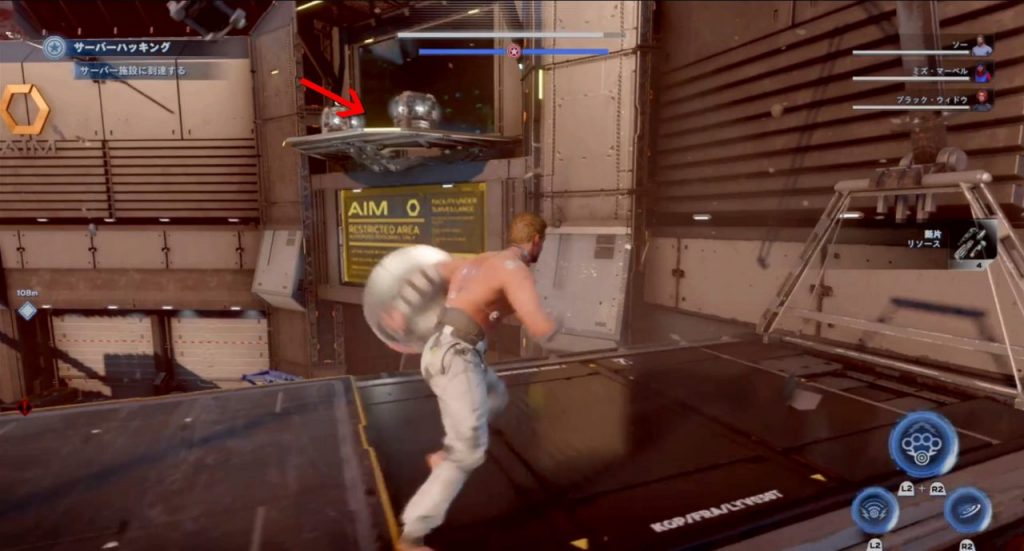 エレベーターを動かすにはジャーヴィスのハッキングが必要です。占領エリアが三か所存在しますので、頑張ってエリア死守に巡回しましょう!
