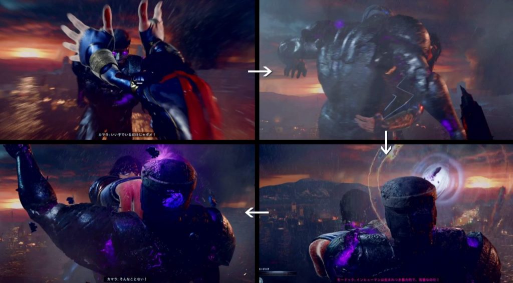 ここからはムービーで時折り指示されるボタンアクションをこなすだけなので映像・セリフに集中して感応して下さい。 ボコるだけボコったらカマラの勝利!お決まりの気を失って倒れます(^_^;)