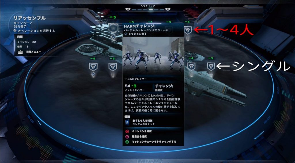 割り切ってヒーローレベル上げだけを考えた場合、おすすめできるのはヘリキャリア内にあるバーチャル・トレーニングHARMチャレンジです。
