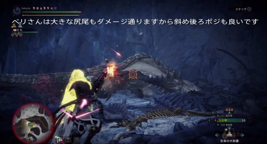 ベリオロスが広範囲に移動しながら暴れまわる場所より、この狭い空間が予測しやすいので私は好きです。そのためにも回避性能と回避距離をガン積みしてます!