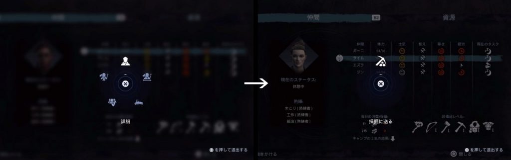 探索で遭遇した人間を避難所に誘うことで仲間になります。メニューのフォロワー管理で状態を見ることができますし、仲間に指示を出すことも出来ます。