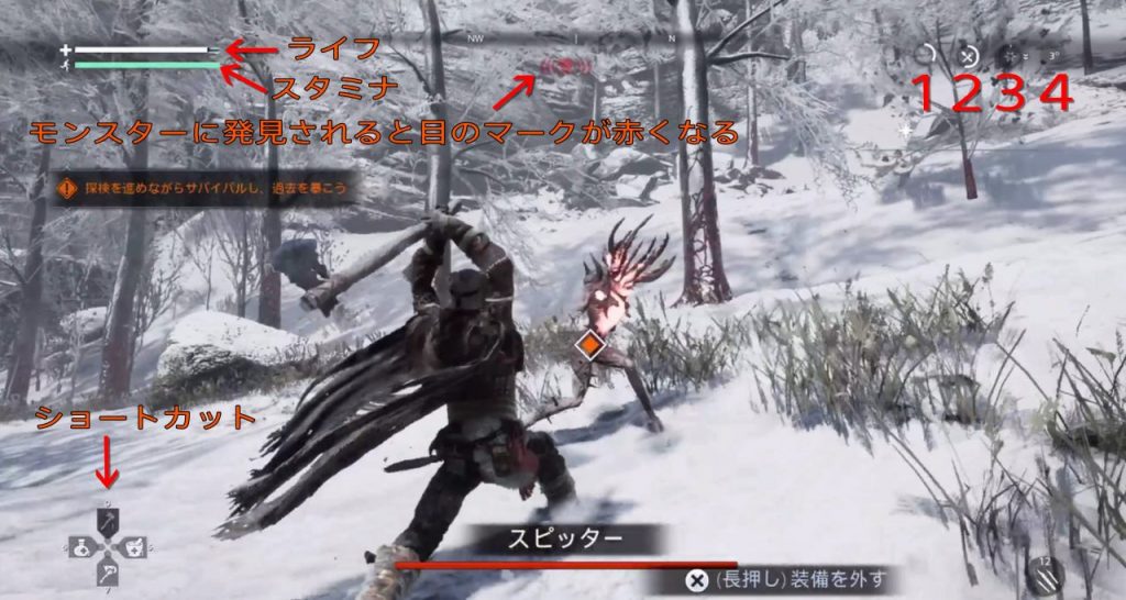 このゲームにおいて、戦闘は避けて通ることができません。死にゲー程の難易度はありませんから、頑張ってコツを掴んでいきましょう!特にパリィ(モンスターの攻撃に合わせるように防御し攻撃をはじくこと)は重要で、地中を移動し攻撃してくる相手には非常に重要なテクニックとなります。