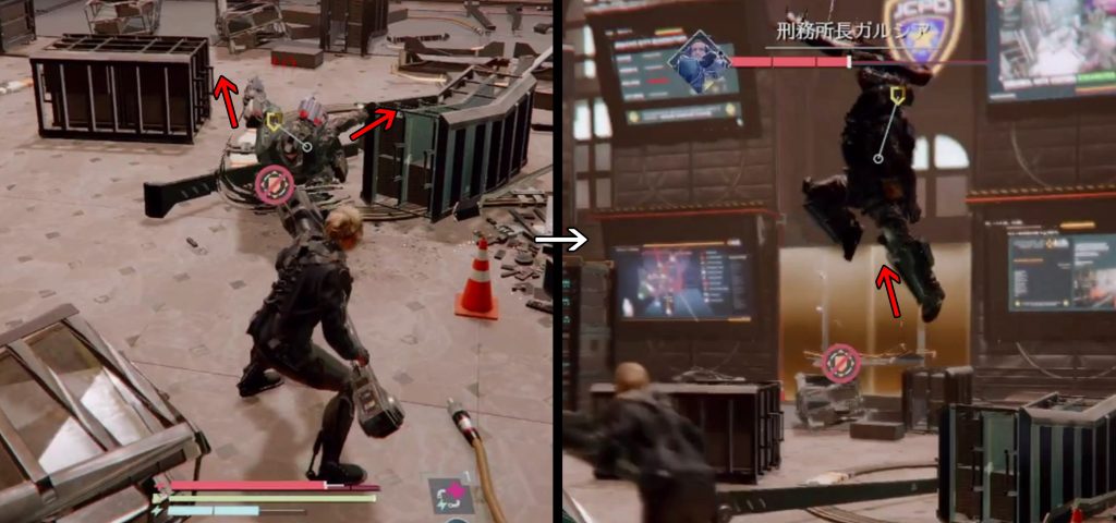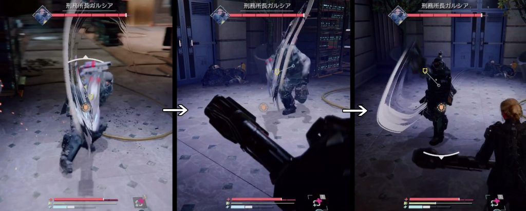 ガルシア戦に向かうまでの道中で、イコライザー持ちの敵が出現します。 攻撃部位を右手に合わせダメージを蓄積させると、切断指示が画面に表示されますので、切断し我が物としましょう!