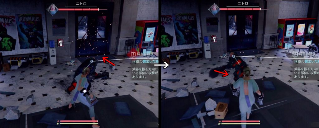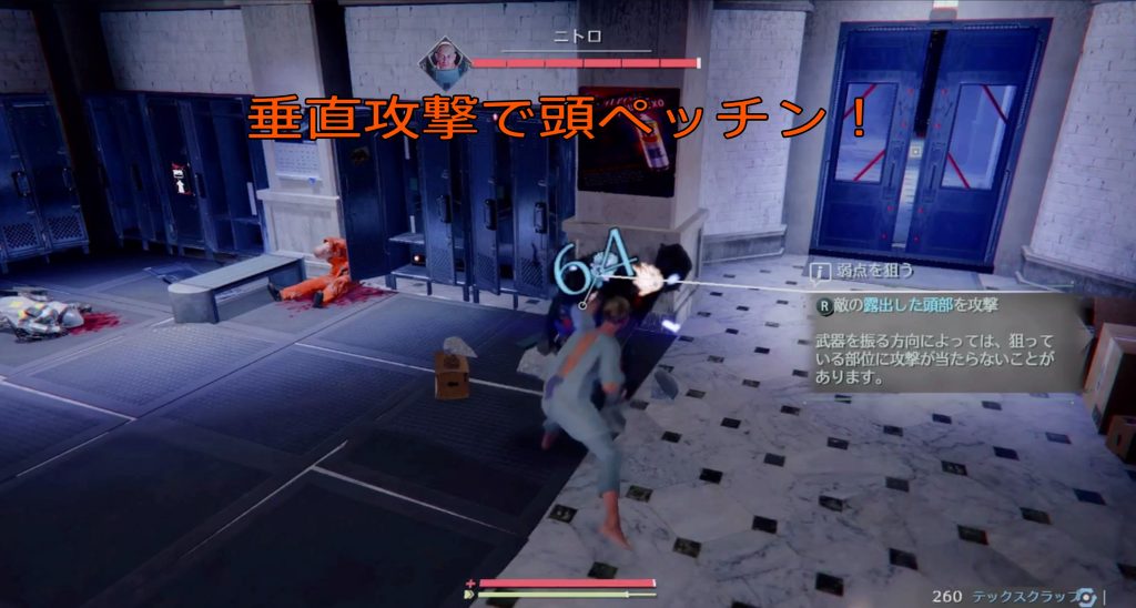ニトロは攻撃後に比較的大きなスキが発生します。 攻撃後に接近し垂直攻撃(デフォルトではR2)で頭を殴って下さい!