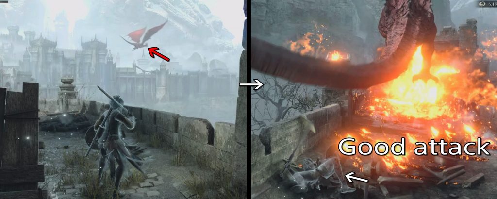 壁上は障害物が多く、定期的にドラゴン(通称リオレウス)が遊びに来ます。 最初の安置までは、普通に駆け抜けで大丈夫です。