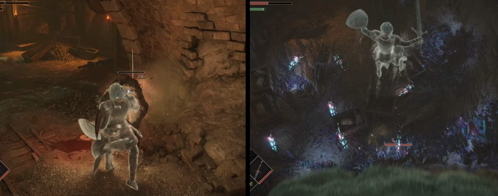 後ろに見えてる門はボス審判者への入口で、今は開放されてますが濃霧カーテンで覆われてます。