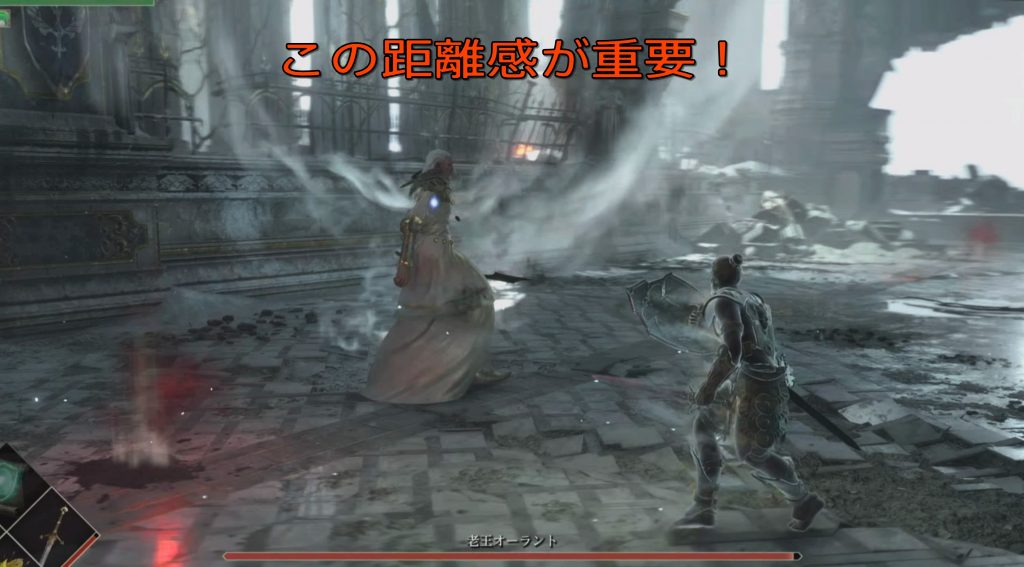 オーラントがソウル吸収を発動するのは近接のみです。 従って、近接~中間距離を維持しつつ、ソウル吸収を待つ必要があります。 もちろん回復など立て直しを図る場合は、距離を取ることも必要です。