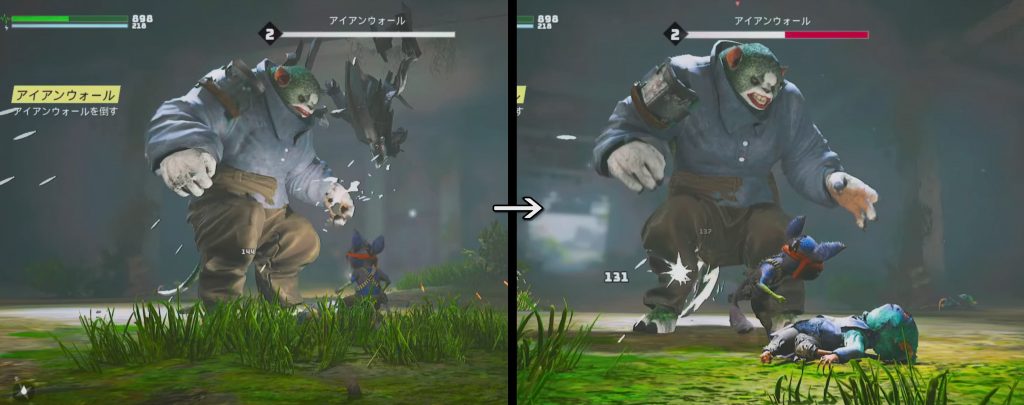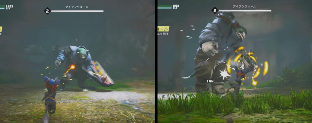戦闘は単純な壮快アクションだけではなく、敵によっては盾などの特定部位を破壊しなければダメージが与えられない憎い作りとなっています。 戦略要素があることを、最初のチュートリアルパートで気づかされることにも感動しました!
