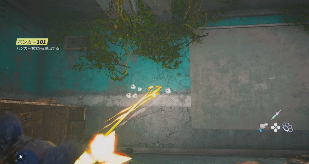 些細な事ではありますが、壁を撃つと銃痕(じゅうこん)が表現されます。 すぐ消えてしまいますが、地味にいいですね!