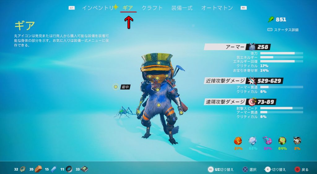 バイオミュータント 今回はお気に入り装備セットの登録方法となります。 日本語の表現が微妙なバイオミュータント(実際ガバガバですが・・・)、ゲーム内の対話や遊び方が伝わりにくくなっているのが残念と言わざるを得ません。